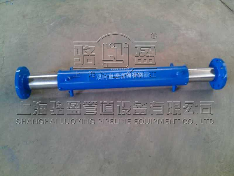 直埋外壓式補償器的波紋管兩端分別與外管,通管相連,能吸收較大的軸向位移,用于直埋熱力蒸汽管道。但在用于大口徑管系時因內壓推力過大,要注意固定支架的強度,以免在試壓時發(fā)生固定支架坍塌現(xiàn)象。
