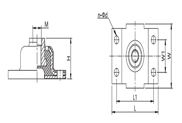 EA型橡膠隔振器由金屬與橡膠復(fù)合制成,金屬表面全部包復(fù)橡膠,能防止金屬銹蝕。產(chǎn)品固有頻率低,阻尼比適宜,橫向剛度高于垂向剛度,適用平置、倒置及側(cè)掛等多種安裝形式。平置使用時(shí),橫向穩(wěn)定性好。當(dāng)承受較大沖擊時(shí),可自動(dòng)限位保護(hù),同時(shí)對(duì)共振峰的抑制能力很強(qiáng),對(duì)瞬態(tài)沖擊響應(yīng)瞬時(shí)過度工況等引起的自振能迅速消失,設(shè)備不致出現(xiàn)任何晃動(dòng)。該產(chǎn)品在較寬的干擾頻率范圍內(nèi)有相當(dāng)明顯的隔振效果,能適用于各 類陸地、船用機(jī)械設(shè)備,如柴油機(jī)、風(fēng)機(jī)、水泵、空壓機(jī)、空調(diào)機(jī)、儀器儀表等中、小型機(jī)械設(shè)備的隔振。對(duì)有水平擾力的機(jī)械設(shè)備,使用本隔振器能取得良好的隔振效果。