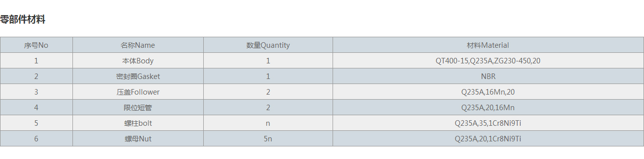 | 6 | 螺母Nut | 5n | Q235A,20,1Cr8Ni9Ti |